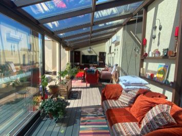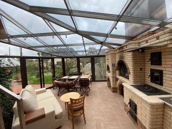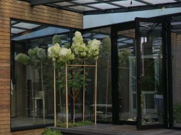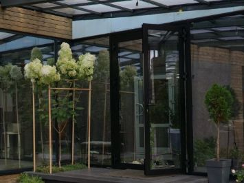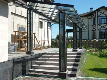 Самая лёгкая и прочная конструкция на рынке стеклянных конструкций позволяет нам реализовывать почти любые идеи дизайнеров. Визуально невесомые стены. Их как будто бы нет. Лёгкие и большие по площади навесы из стекла.
